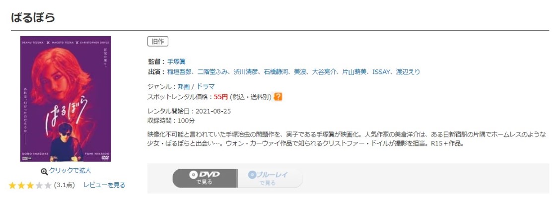 のDVDもTSUTAYA DISCASでレンタルされていますので、無料お試し期間中に映画『ばるぼら』と一緒に無料視聴が可能ですね!