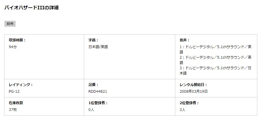 映画『バイオハザード3』のDVD・BDはレンタルされているの?