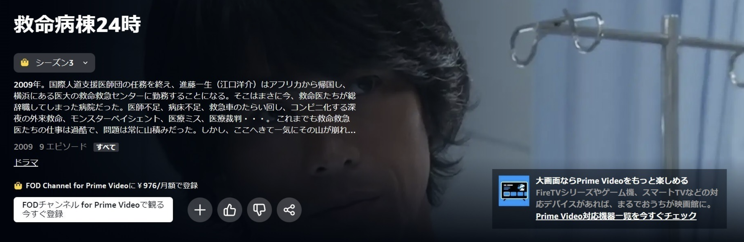 Amazonプライムで『救命病棟24時 第4シリーズ』の動画を全話無料トライアルで視聴
