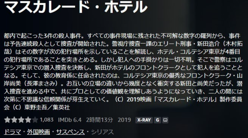 ぜひ、映画『マスカレードホテル』のフル動画の無料視聴をAmazonプライムでお試し下さい♪