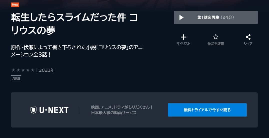 U-NEXTで『転生したらスライムだった件 コリウスの夢』の動画を全話無料トライアルで視聴