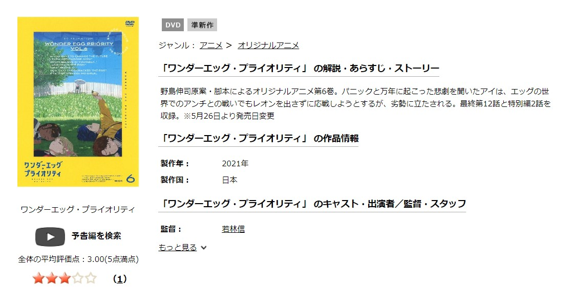 そんな、TSUTAYA DISCASではアニメ『ワンダーエッグ・プライオリティ 特別編』のDVDがレンタルされています。