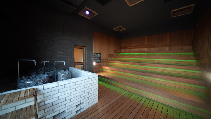 「ENTAME SAUNA」では照明演出や音響システムを駆使し、毎日スタッフによるアウフグースも開催されています。