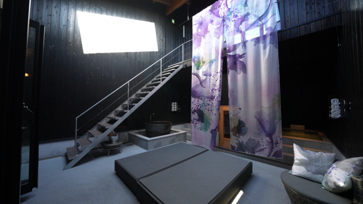 基本男性専用施設で、施設内は和モダンな落ち着いた高級感のある雰囲気。2Fにあるパブリックサウナは間接照明で暗めの室内。最大20人まで入れます。20分間隔でスタッフによる「ほうじ茶」を使ったロウリュウも行われています。外気浴スペースもあり風を感じられます。1Fはプライベートサウナ付き客室もあり、予約をすれば日帰りでの利用も可能です。