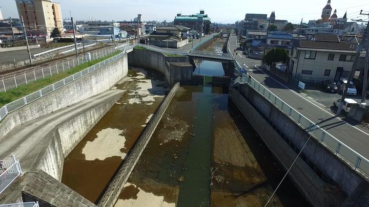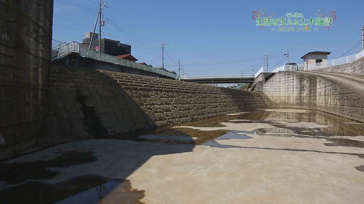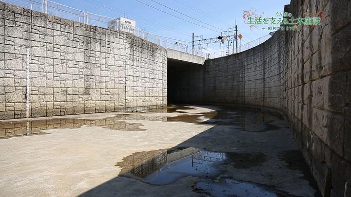 県内第1号の放水路として建設された『滝川放水路』。放水路入口は、常時はゲートで締めきられているが、水位が上昇するとゲートを開放し、利根川に流下させる構造となっている。