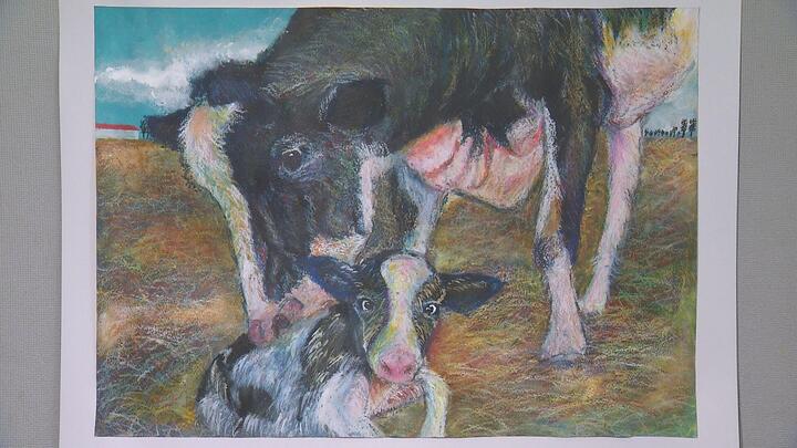 1月26日に県庁で行われた牛乳をテーマに一枚の画用紙におもいっきり表現する牛乳絵画・牛乳はり絵作品コンクールの表彰式。受賞者インタビューと作品を紹介します。