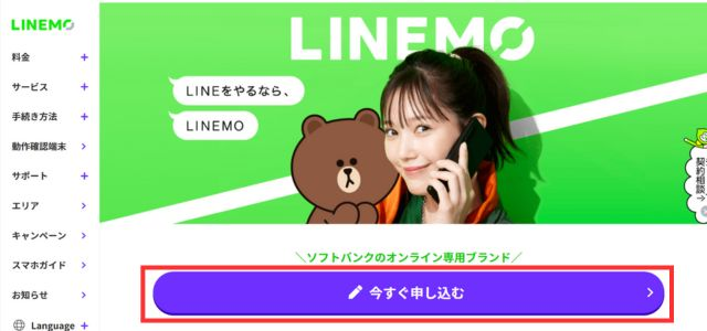 linemo公式サイトにて申し込みを始める引用元:linemo公式